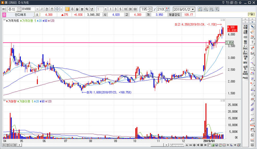 종목명 : 인디에프※ 매수기회를 주지 않고 목표가 도달시 추격 매수금지