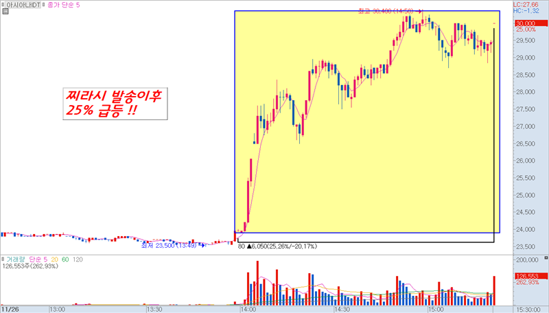 아시아나IDT도 전일 대비 5050원(22.65%) 오른 2만7350원에 거래 되고 있다.