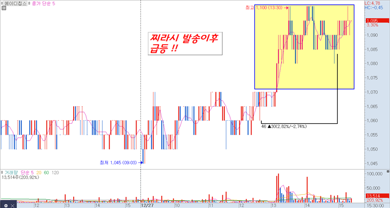 에이디칩스가 강세다.(시스템반도체+ 5G관련주+ 자율주행+기타등등)수혜주
