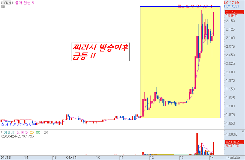 CNH (023460) - 신규 조국 테마주 삼보산업 혜광고 동
