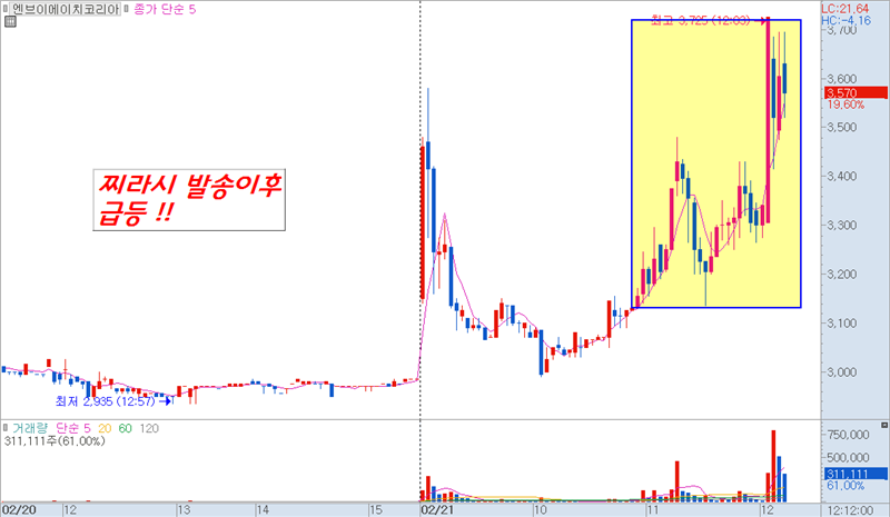 [엔브이에이치코리아] 내일 쩜상 예상(음압병실 부족 국내유일의 주식)