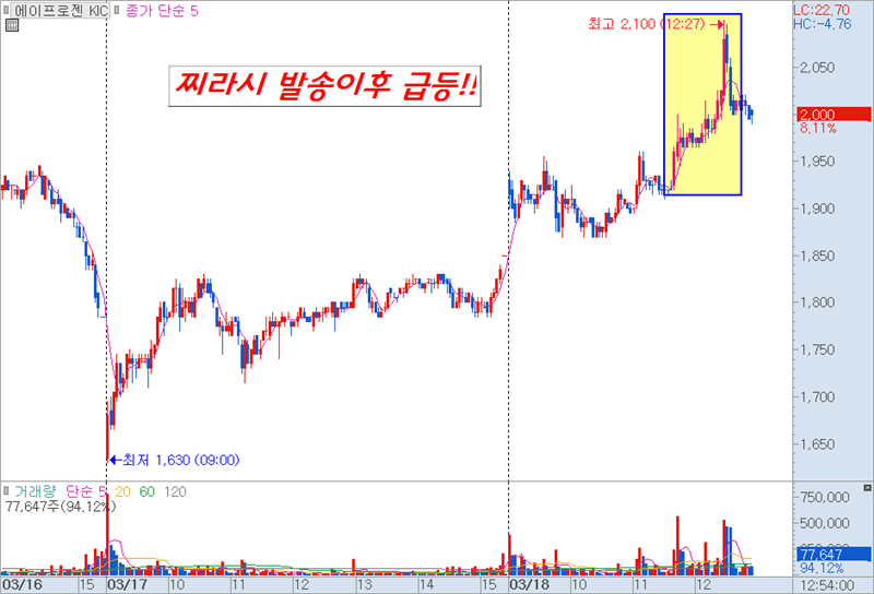 독점 판권 가지고 있는 에이프로젠KIC 뉴스 전 입니다.