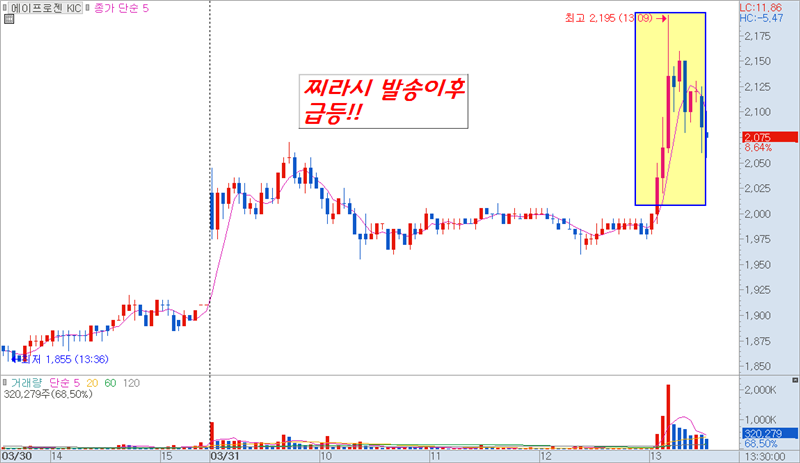 독점 판권 가지고 있는 에이프로젠KIC 뉴스 전.