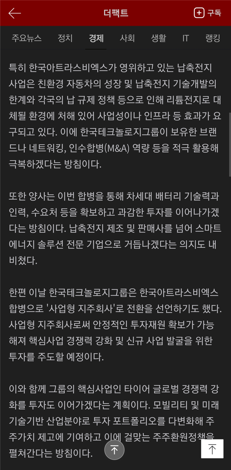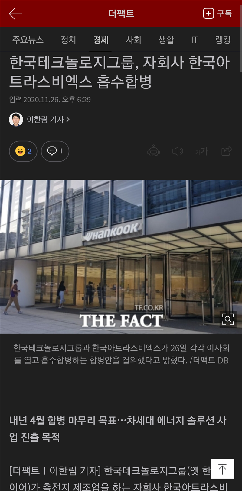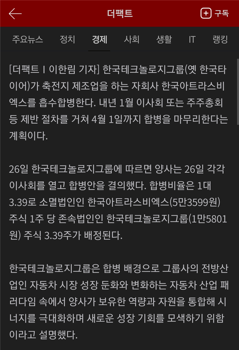 한국테크놀로지그룹, 자회사 한국아트라스비엑스 흡수합병
