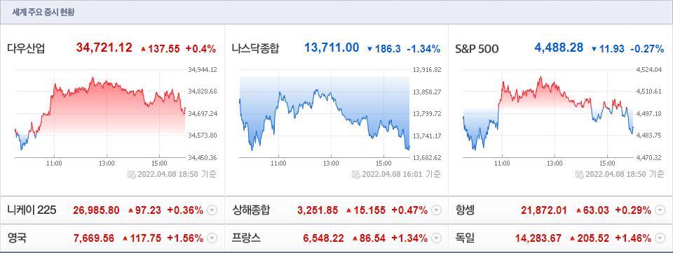 - 지난주 금요일 미국증시는 긴축우려와 지정학적 이슈에 대한 불확실성이 지속되면서 다시 하락 발생. 우리시간으로 내일저녁 3월 소비자물가지수(CPI) 발표 예정. 다음날은 생산자물가지수(PPI) 발표와 15일은 러시아 달러채권 이자유예 만기일, 부활절 서구장 휴장. 북한 태양절 등등...